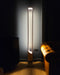Lámpara de pie en madera nativa con base de hormigón y difusor LED. Pensada para acompañar cualquier living sin ocupar mucho espacio, pero con un protagonismo incuestionable.